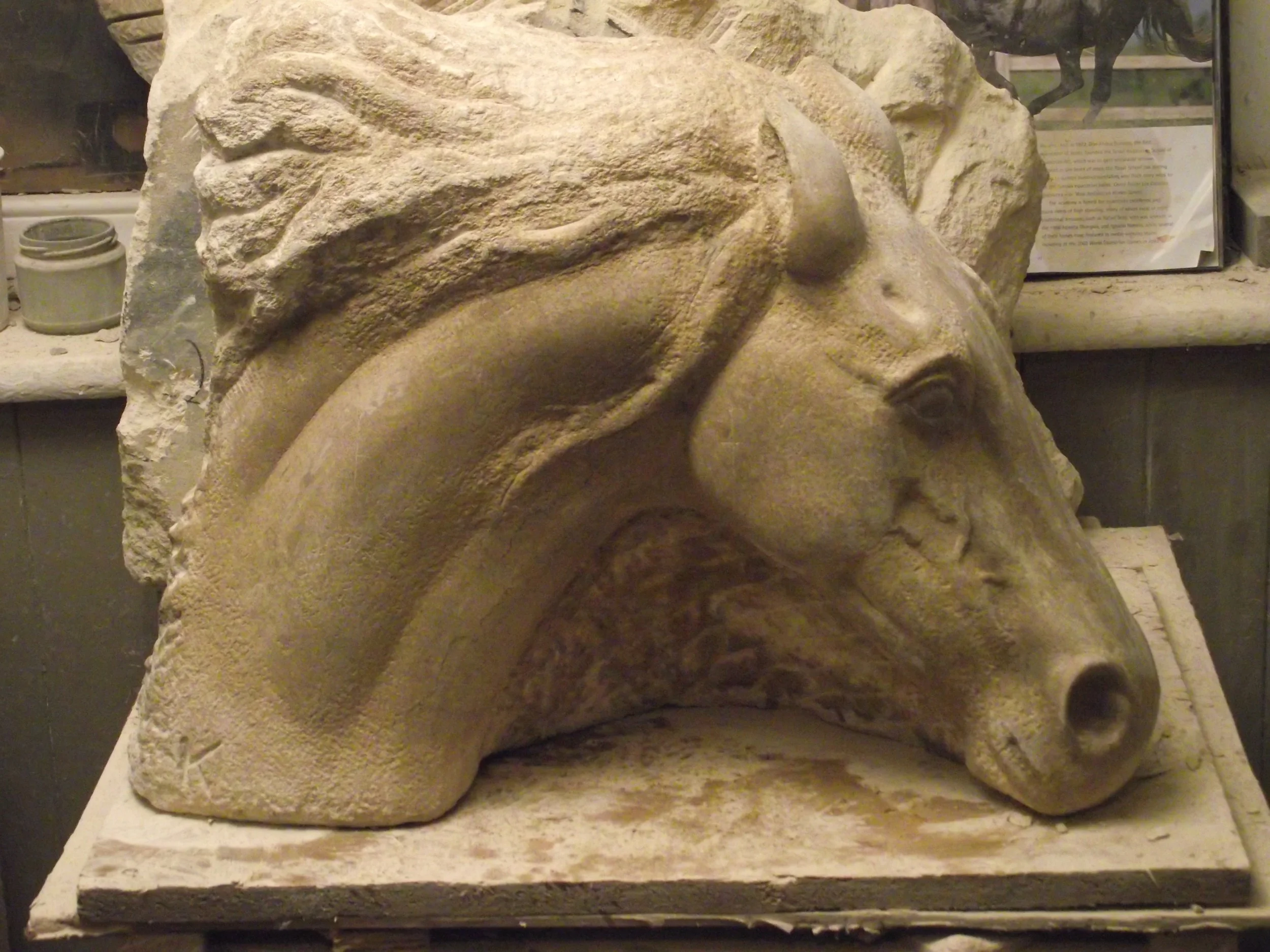 Final detailing is being undertaken on one of a series of figurative stone heads.