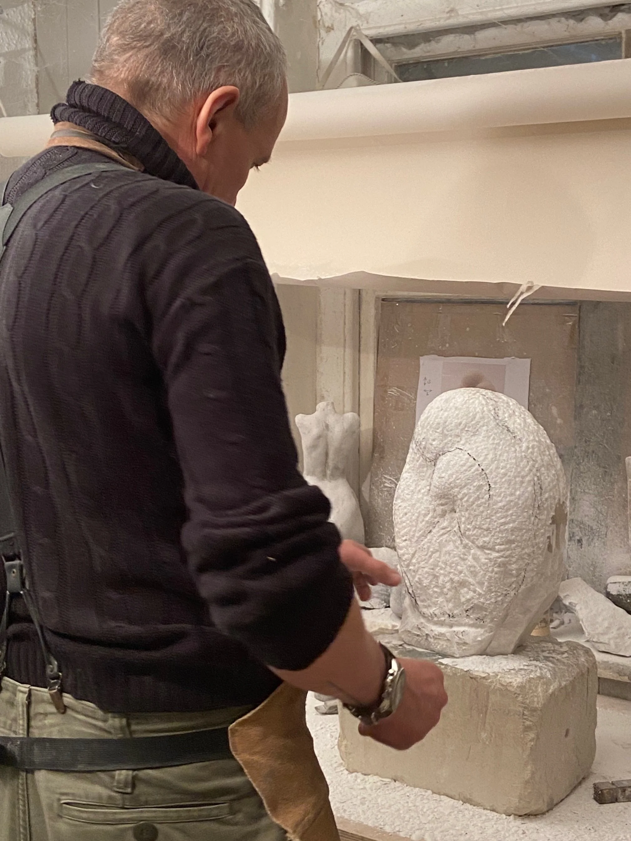 Work has started on a new stone carving for Thackeray Gallery's Summer Show in Kensington (6 – 23 June).